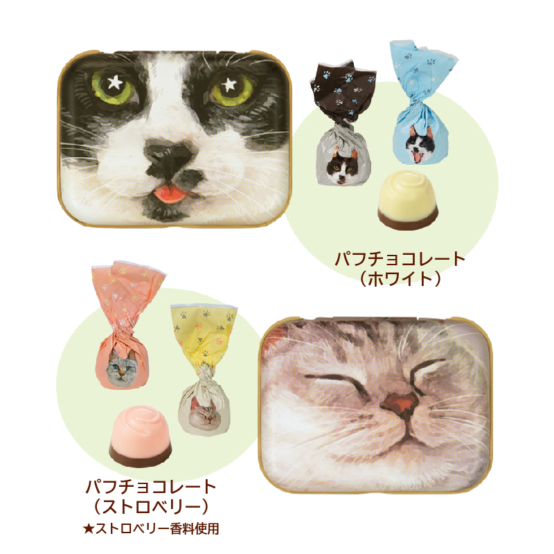 我們有各種可愛又令人興奮的巧克力,形狀為睡貓或爪子圖案。可愛的貓形包裝一定會讓你心動不已!