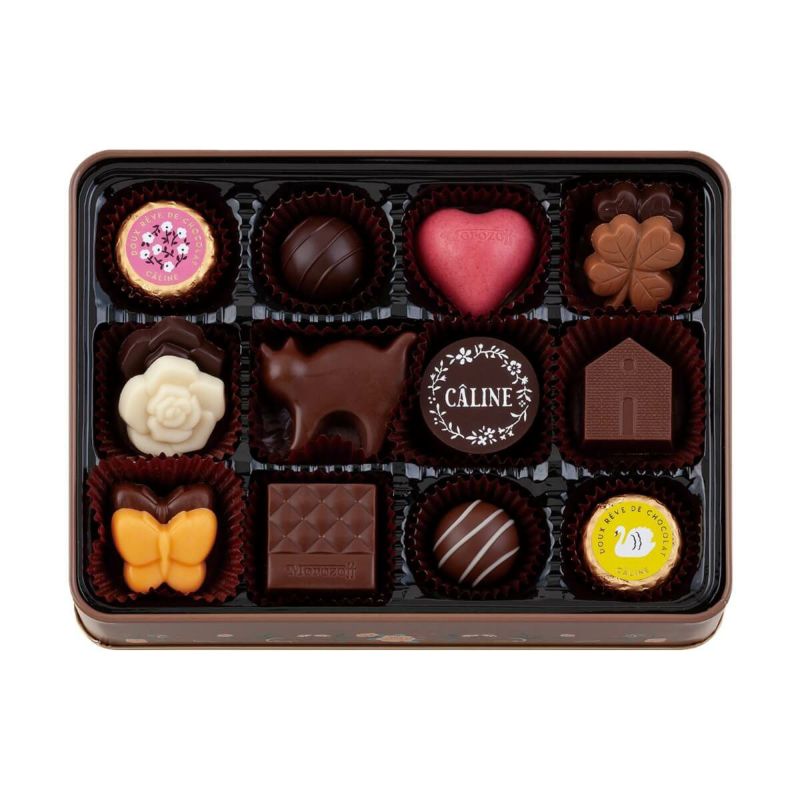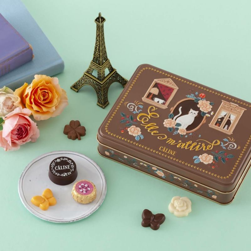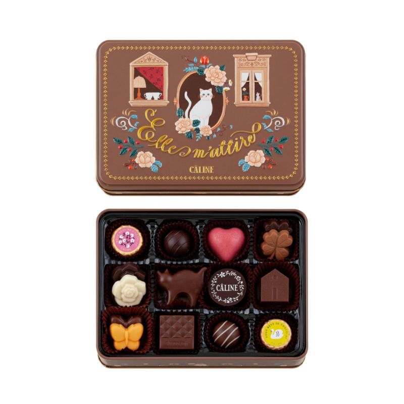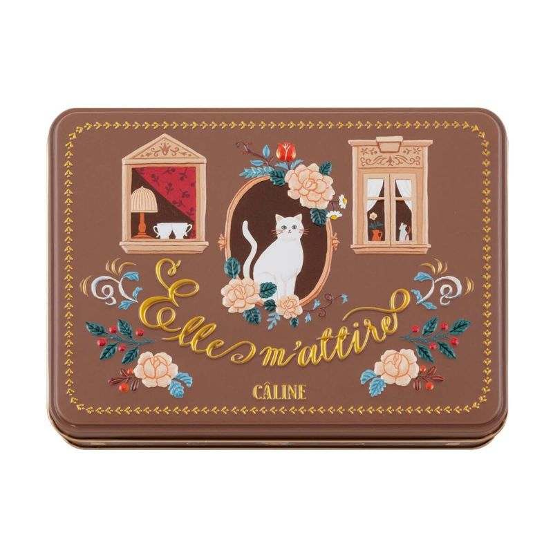 日本直送|情人節系列 | 日本 MOROZOFF X CALINE 窗邊貓貓棕色長方形鐵罐朱古力 15件【截單日期: 02/02/2024 09:00 AM | 預計05/02到貨】