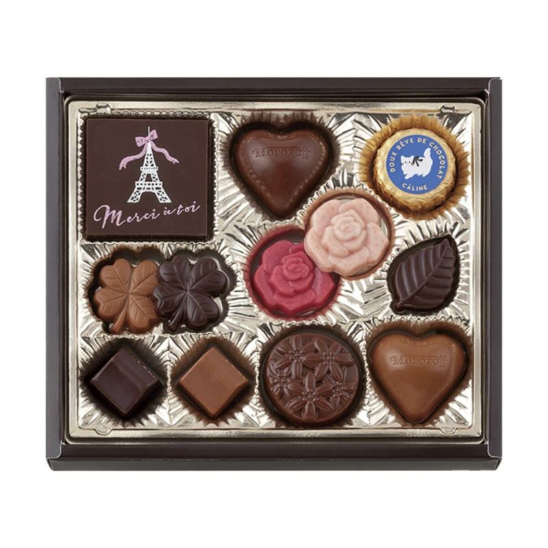 日本直送|情人節系列 | 日本 MOROZOFF X CALINE 花花海軍藍朱古力禮盒 12件【截單日期: 02/02/2024 09:00 AM | 預計05/02到貨】