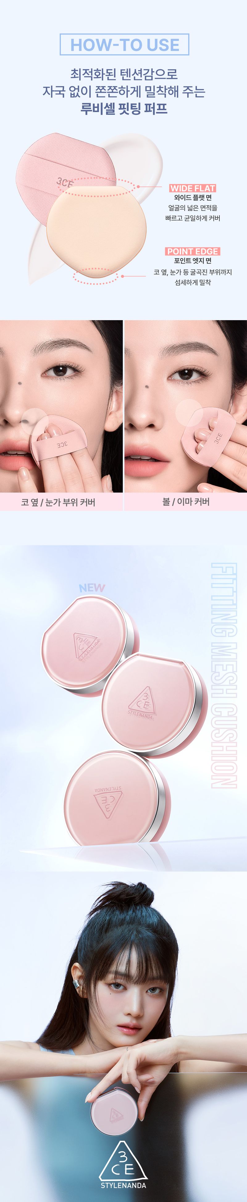 韓國 Olive Young 特別優惠套裝 - 3CE Fitting Mesh Cushion Refill Planning Set + Pouch Gift 貼合網狀氣墊粉底 (+額外送贈 3CE小袋 )