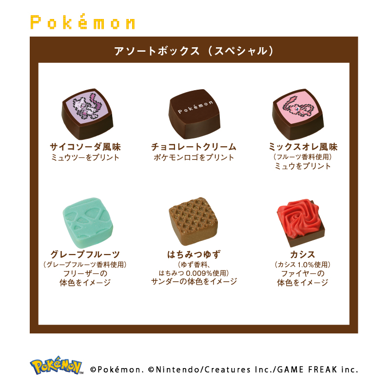 我們有各種各樣的巧克力,其主體顏色為冰凍雷霆之火,以及印有超夢和超夢的巧克力。