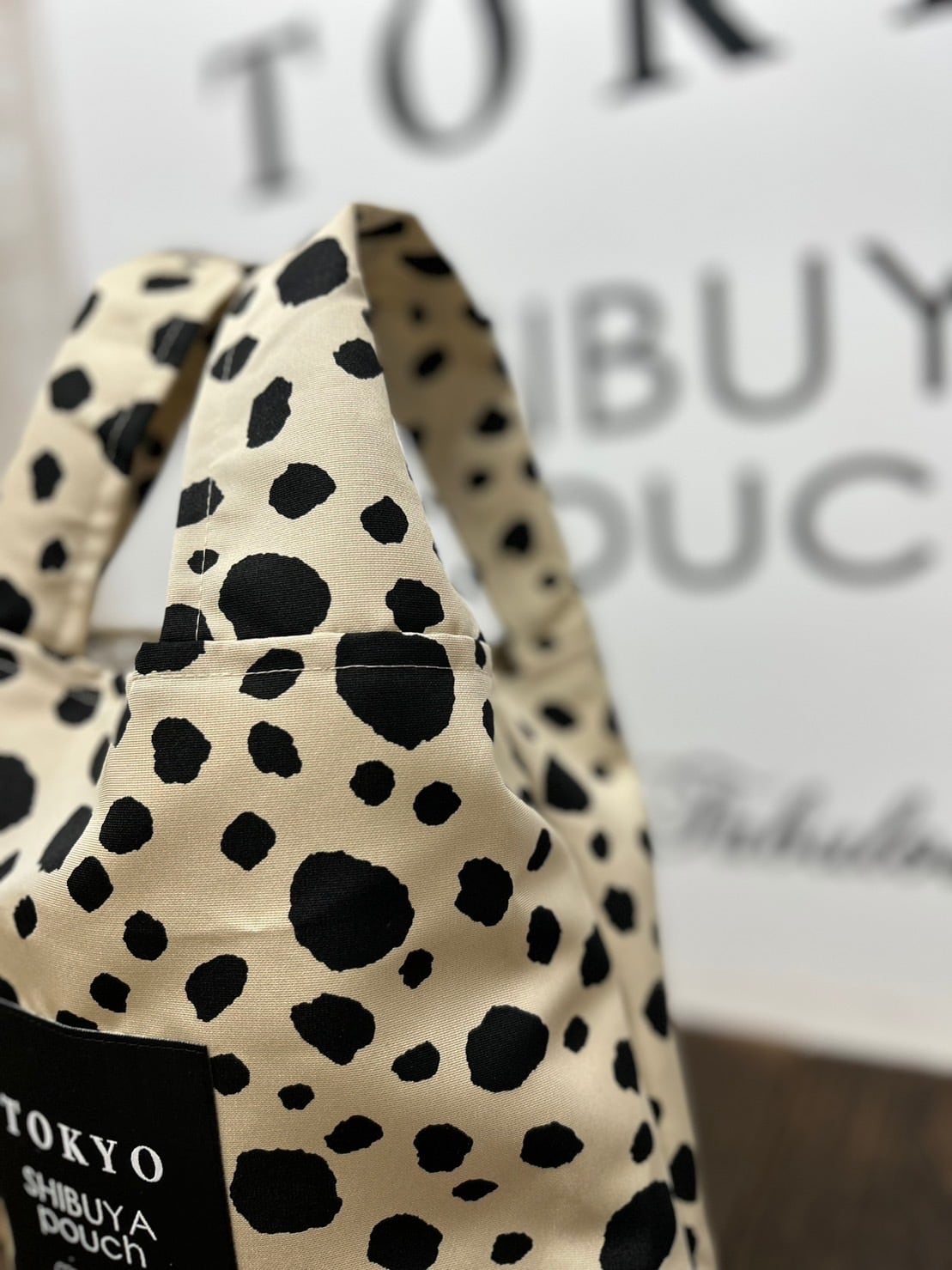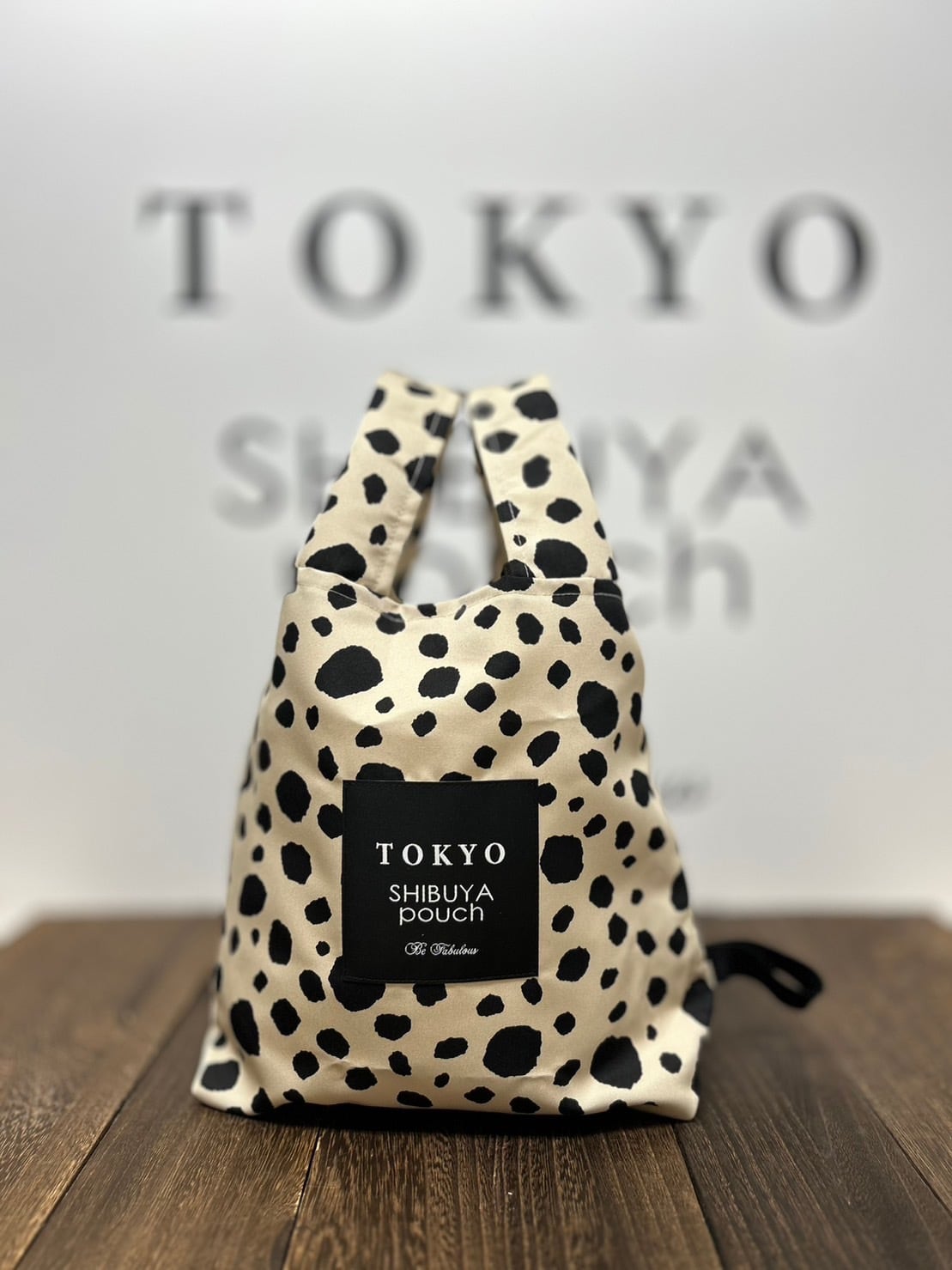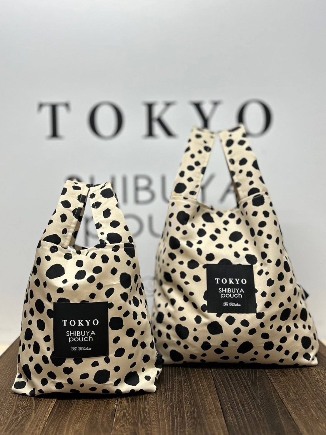 【日本直送】TOKYO SHIBUYA POUCH 大圓點軟包(米色)(M號) | 日本超火紅環保袋 | 非常好攜帶 | 超輕便又好用